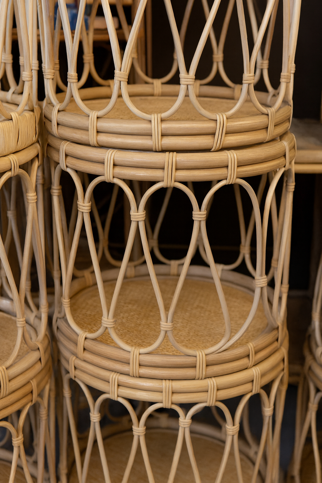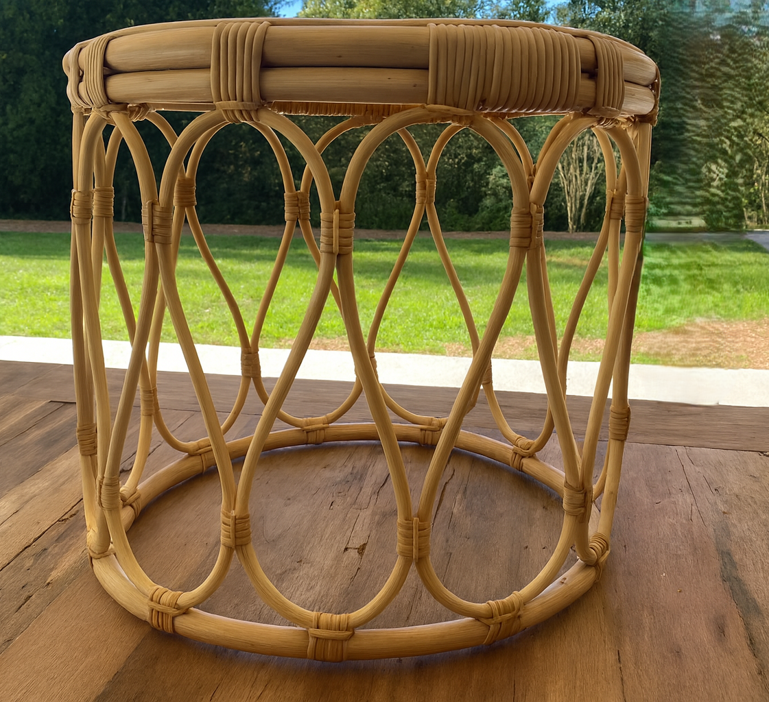 Handcrafted from skilled Indonesian artisans, the Sasa features a tightly woven rattan top and a looped rattan design around its frame, bringing strength and beauty to this piece.